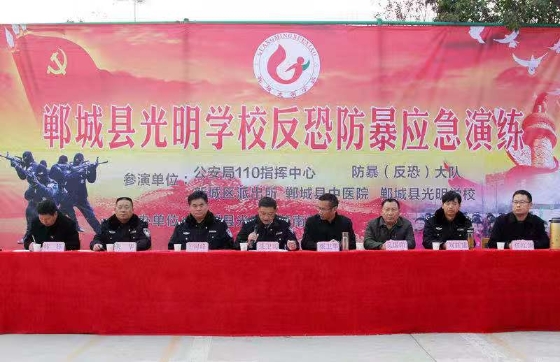 為切實做好“平安校園”建設工作,進一步增強全縣師生對突發暴恐事件的防范意識,提升在面對暴恐事件時自護自救及有效逃生避險能力,最大限度減少因突發暴恐事件對師生造成的傷害,提高學校安全保衛應急處置和管理水平,12月20日上午,鄲城縣反恐辦組織相關單位在光明中學開展防暴恐知識培訓和演練。
