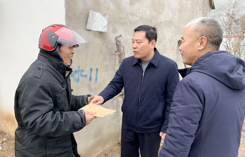 在牛莊和梁莊行政村,趙紅建在寧平鎮鎮長王樹勤的陪同下,看望慰問了困難群眾、困難老黨員,送去了慰問金,向他們致以新春的問候和美好的祝福。