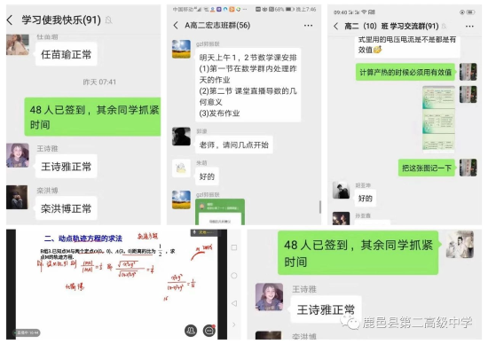 縣第二高級中學高三畢業班的班主任趙曉莉老師說:“疫情阻擋不了我對學生的關懷,疫情阻擋不了我對職責的擔當!這就是我們二高人的精神和情懷!”新冠肺炎發生以來,學校以班級為單位組建網絡課堂,讓學生加入進來,在線上直播課堂,學生聽課,線下布置作業,學生按時打卡完成,實現停課不停學,教師和學生“在家上課”!