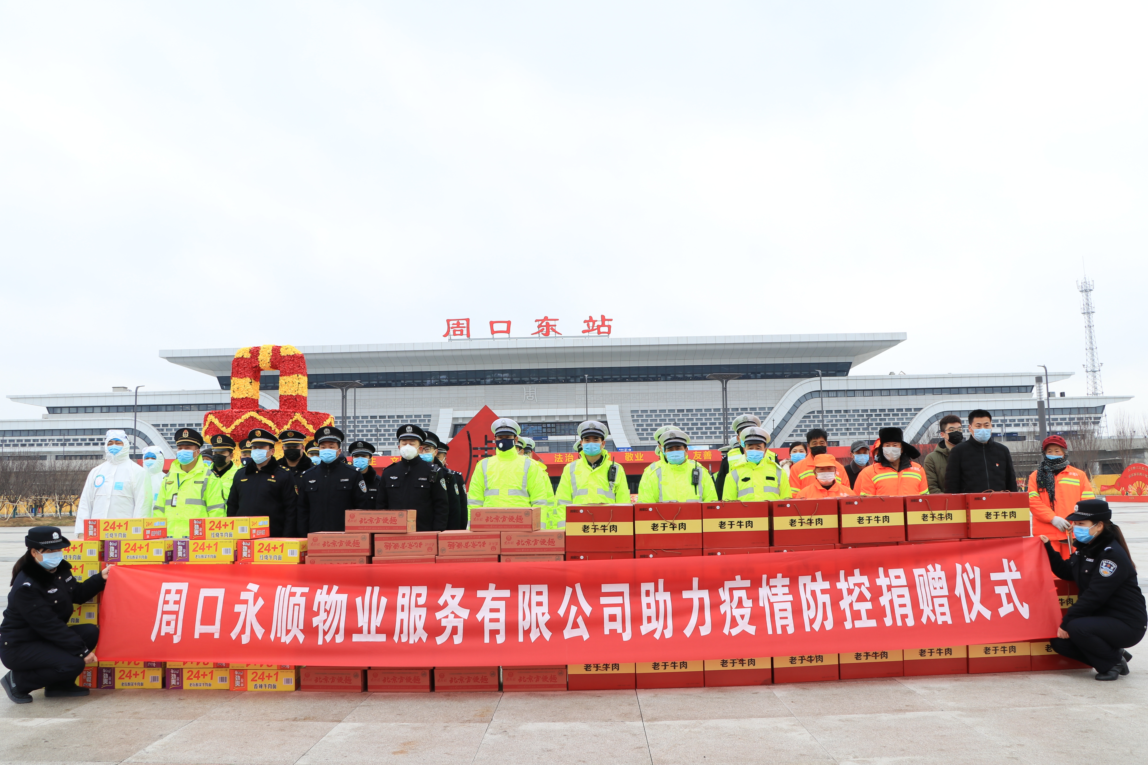 當日上午10時許,周口永順物業服務有限公司總經理李文永來到高鐵周口東站,他為疫情防控一線的公安民警、路政、城管、醫護、保潔等工作人員送來了火腿腸、方便面、牛肉等食品,解決一線工作人員吃飯難的問題。