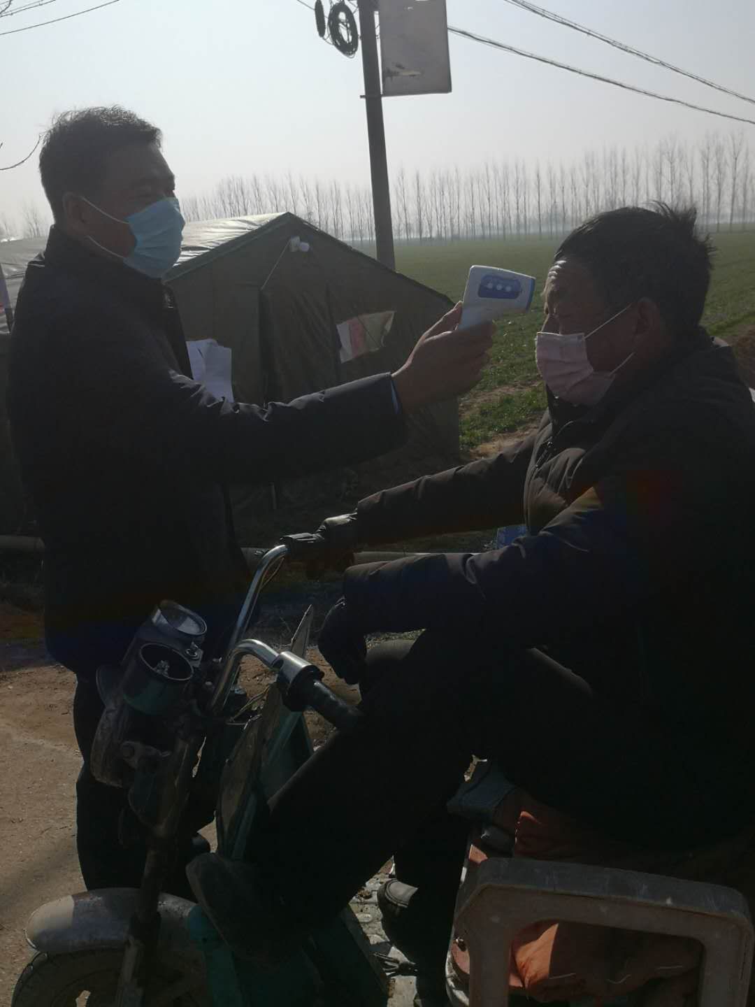 由于物資未曾到位,檢測點僅簡單搭了一頂四面透風的帳篷,紀占東跟其他工作人員一起在寒風中檢查登記出入人員、測量體溫,天氣寒冷,吃飯也只能用饅頭、泡面對付,但是內心是火熱的。紀占東說在防控工作中,絕大部分群眾理解和支持的,有群眾在家里燒好開水給值班人員送,還有的群眾送來暖手寶、熱氣騰騰的飯菜......這些都是他工作的動力和源泉。
