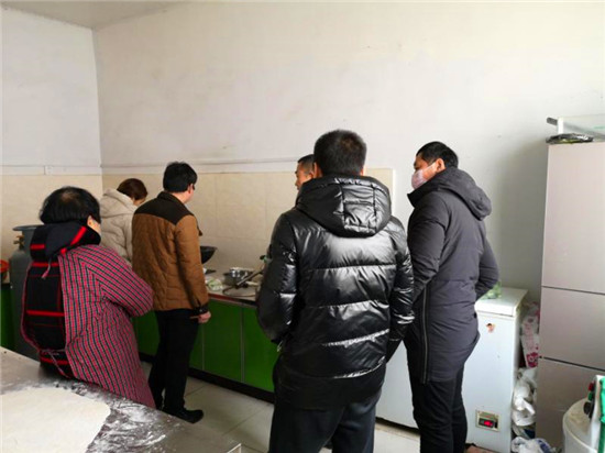疫情越來(lái)越嚴(yán)重,鄉(xiāng)干部全部下沉到行政村,搞宣傳、設(shè)卡點(diǎn)、控人流。因?yàn)樵绯鐾須w無(wú)暇在家就餐,加上飯店閉店,鄉(xiāng)政府伙房每餐都就餐人數(shù)從平時(shí)一二十人激增到五六十人。買(mǎi)不到饅頭吳素霞就親手蒸,買(mǎi)不到面條她就親手搟。特別是午間各村卡點(diǎn)人員交接時(shí)間不一,送走一波人又來(lái)一波。剛洗刷完餐具、清掃好廚房又該準(zhǔn)備下一餐了。