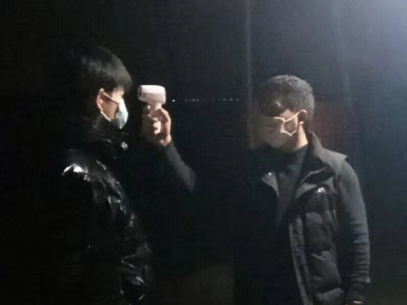 “請登記個人信息,測量一下體溫。”2月8日晚22時30分許,市城鄉一體化示范區許灣鄉許灣村南卡點,任萬輝正在卡點守候,登記過往行人、車輛的個人信息,為他們測量體溫。