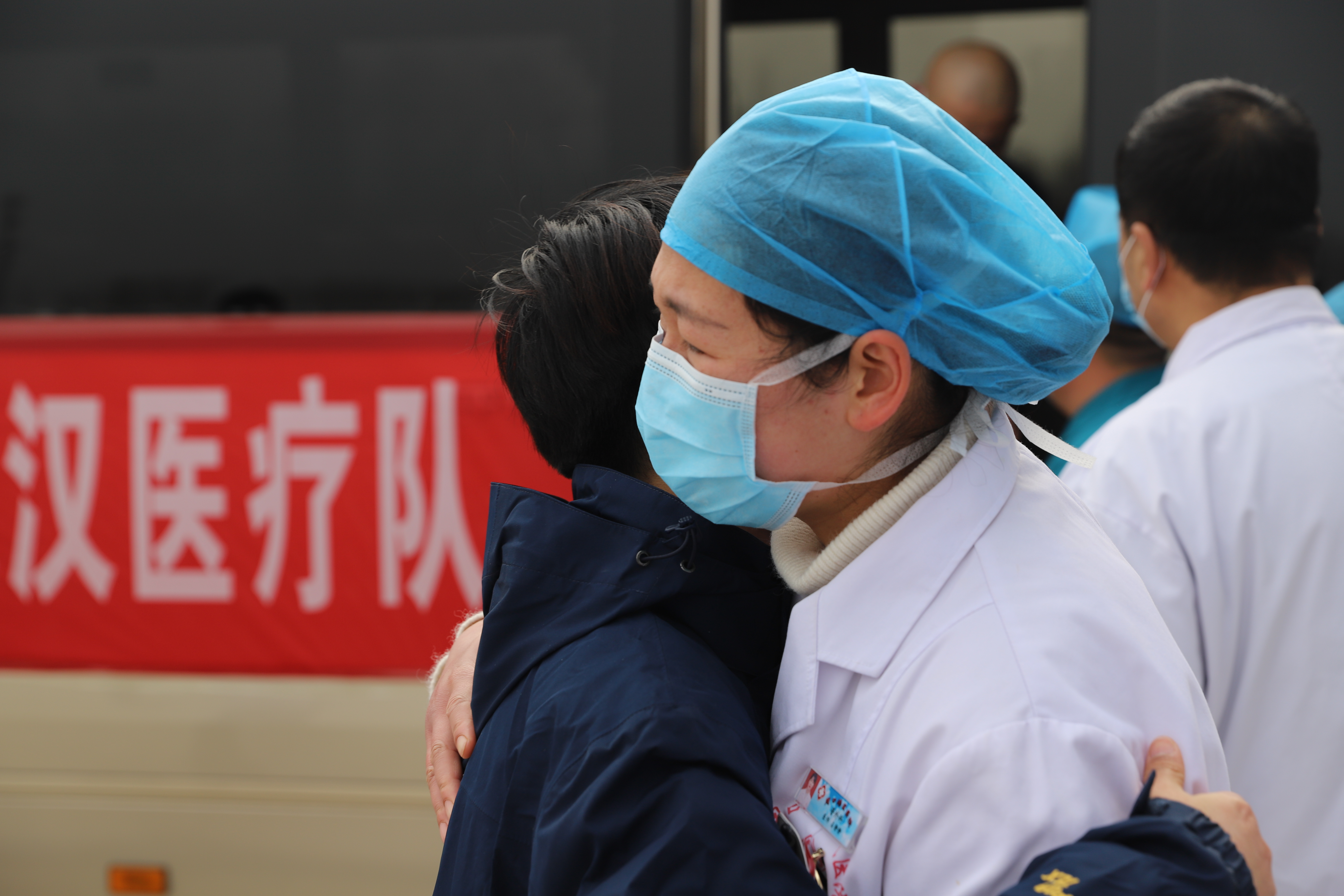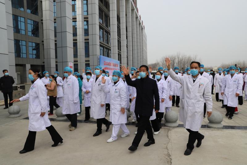 當天上午港區醫院為醫療隊舉行了一場歡送儀式,到場的不僅有該院的醫護人員和部分出征隊員的家屬,市領導和港區黨委、管委會領導也親自到場,為他們送行。