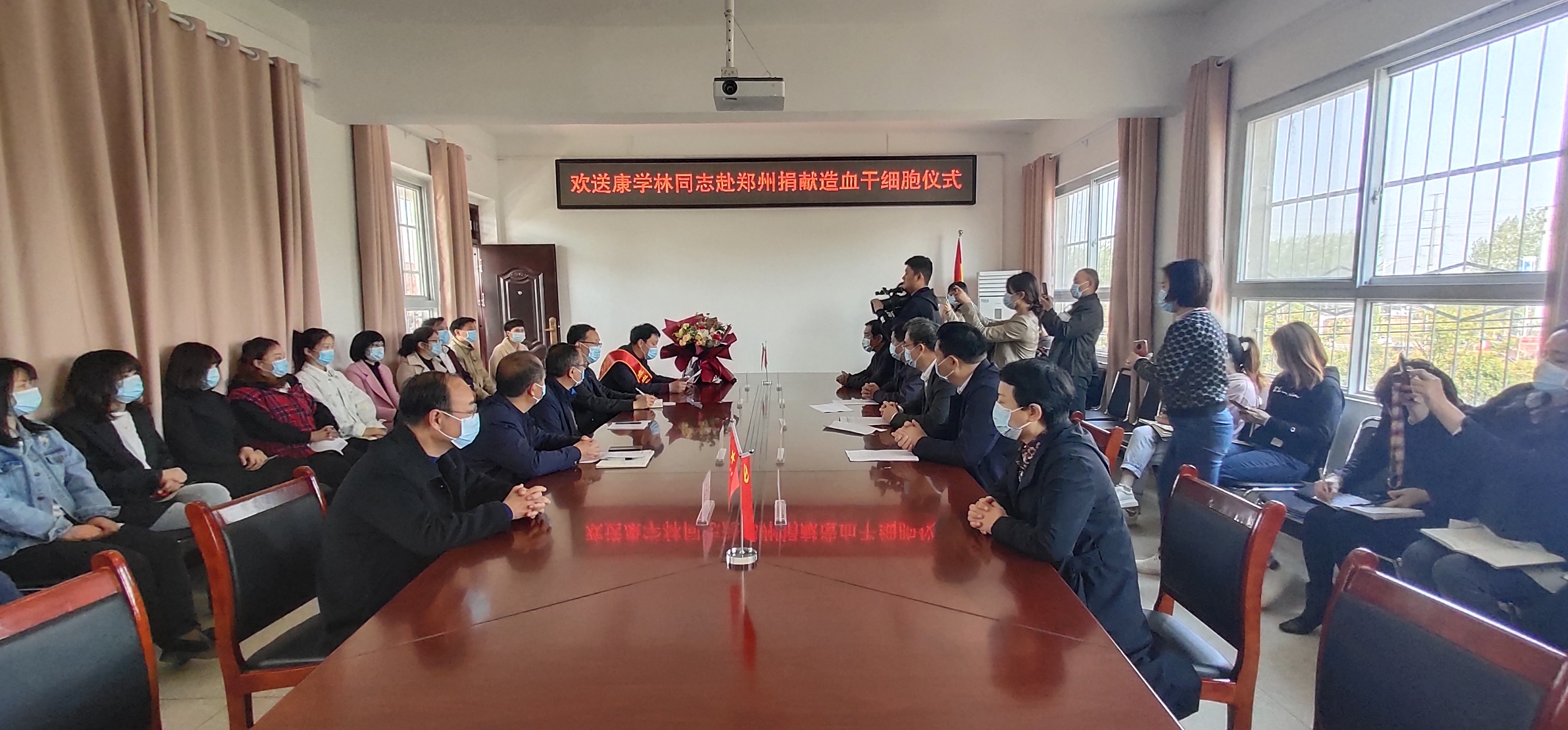 4月13日上午,在川匯區醫保局三樓會議室,我市為康學林赴鄭州捐獻造血干細胞舉行歡送儀式。副市長、市紅十字會會長秦勝軍出席。市政府副秘書長唐峰,市紅十字會常務副會長毛立營,市紅十字會秘書長高春,川匯區副區長、區紅十字會會長晉瑞英,川匯區衛健委主任任艷陽,川匯區醫療保障局黨組書記王平立,川匯區醫療保障局局長欒春光,川匯區衛健委副主任楊平云等參加。
