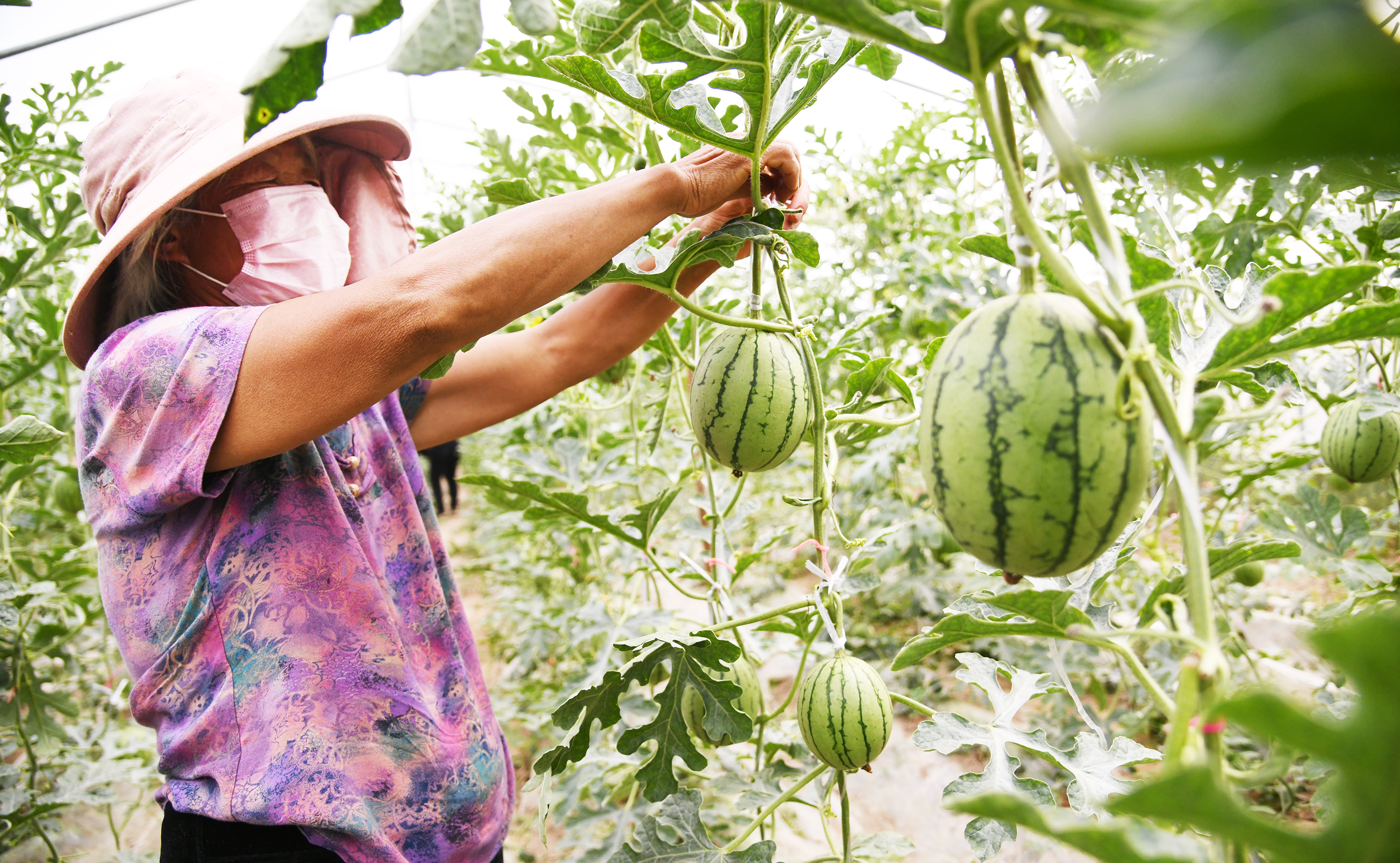 西華遲營鄉百農園產業扶貧基地內的西瓜