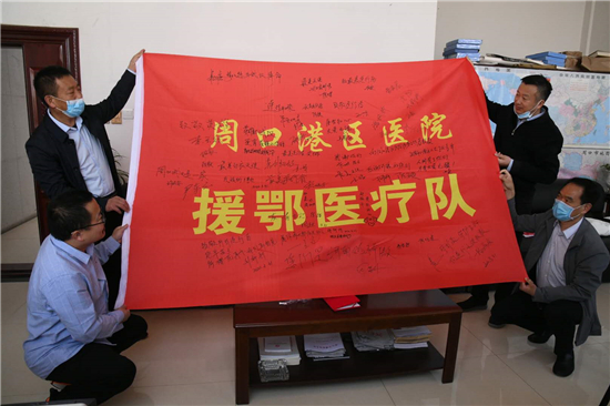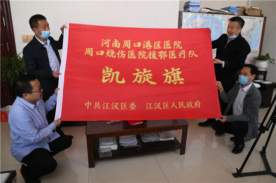 在武漢抗疫期間,周口港區醫院作為我市第三批援鄂梯隊,由港區醫院院長賀志勇、麻醉科副主任醫師高年資,檢驗科檢驗師王記、內科醫師尹東云、中西醫結合醫生田超、急診科的護士石愷麗、護士孫美清、許聽聽、鄭艷平,組成的周口援鄂醫療隊,于3月3日上午出發馳援武漢,進駐武漢商職醫院,開展新冠肺炎患者的救治和護理工作,在援鄂的29個日夜,他們和死神搏斗,搶救病人,用精湛的醫術和職業精神,贏得武漢各界的贊譽。