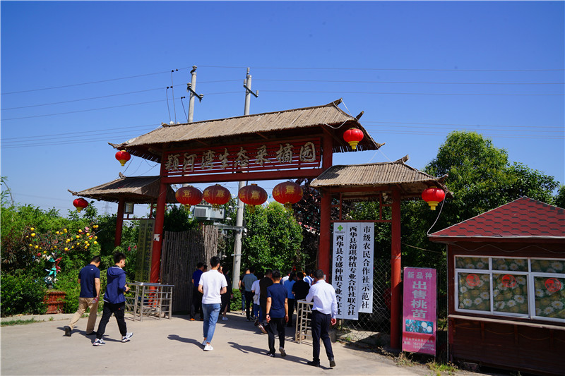 出安羅高速西華西站,沿S329線西行百余步,忽逢桃花林,南行數千步,中無雜樹,芳草鮮美,落英繽紛,林深處現一村莊?!巴恋仄綍纾萆醿叭?。阡陌交通,雞犬相聞。黃發垂髫,并怡然自樂……”穿越千年,陶淵明筆下的“桃花源”在西華縣黃橋鄉裴莊村得以“重現”。