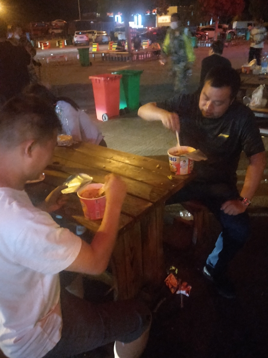 當晚,隊員們帶著嫌疑人歸來,在服務區內,群里傳來一張大家吃方便面的照片,靳偉成還發來一句:“帶了這么多衣服,忙得都沒有時間換一件?!?/p>