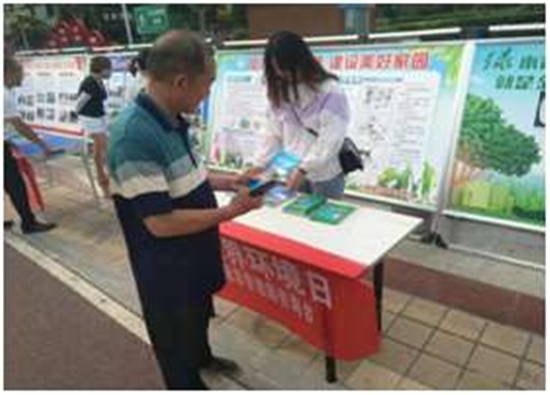 活動現場,天氣炎熱,應急管理局工作人員堅守宣傳咨詢臺崗位,大力宣傳環保知識,向現場群眾發放《生態環境知識宣傳手冊》、環保宣傳彩頁、安全生產宣傳手冊等,倡導大家養成節約能源、綠色消費、低碳出行等環保生活習慣,踐行綠色生活理念。