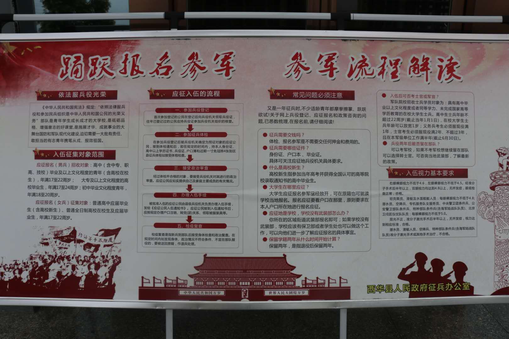 為做好大學(xué)生征兵工作,西華縣人武部認(rèn)真開展了多層次、全方位的宣傳發(fā)動。縣人武部多次召開黨委會,分析大學(xué)生征兵形勢,研究制定層層宣傳發(fā)動方案。扎實開展大學(xué)生兵員潛力調(diào)查工作,挖掘大學(xué)生兵員潛力,及時登記造冊。全縣成立了60支由縣人武部干部職工、鄉(xiāng)鎮(zhèn)專武干部、村民兵干部參加的大學(xué)生征兵宣傳小分隊,分頭對轄區(qū)內(nèi)在家的各級各類院校畢業(yè)生和在校生,進(jìn)行挨家挨戶、面對面的宣傳,把《2020年西華縣大學(xué)生征兵宣傳冊》發(fā)放到每一名大學(xué)生手中,做到一人不漏。為其算好“經(jīng)濟帳”、“ 政治帳”、“ 前途帳”。把針對大學(xué)生青年制定的最新調(diào)整的優(yōu)惠政策宣傳到位,最大限度發(fā)掘大學(xué)生征集潛力。同時,該縣把做深做細(xì)大學(xué)生征兵宣傳報名工作,作為完成征兵任務(wù)的重要基礎(chǔ),積極轉(zhuǎn)變思路,創(chuàng)新工作方法,靈活運用各種宣傳手段,千方百計增強宣傳發(fā)動的針對性、實效性。該部除采取散發(fā)傳單、懸掛橫幅、制作板報、張貼標(biāo)語、現(xiàn)場咨詢等傳統(tǒng)方式外,還充分利用廣播、電視、微信、短信、電子屏等傳媒手段增強宣傳效果,做到廣播電視里有音有像,微信短信電子屏有征兵信息滾動發(fā)布,墻報上有文,橫幅標(biāo)語上有宣傳口號,提高全民政治意識和國防觀念,切實讓大學(xué)生入伍優(yōu)惠政策宣傳不留死角。該部充分利用對現(xiàn)役軍人家庭逐戶走訪解難、贈送懸掛“光榮軍屬”牌匾、敲鑼打鼓送喜報等活動,在全社會大力營造“一人參軍、全家光榮”的鮮明導(dǎo)向,讓尊崇軍人的號召在西華縣落地,讓當(dāng)兵光榮的傳統(tǒng)在群眾心中扎根,從而激勵大學(xué)生青年積極報名參軍的報國熱情。