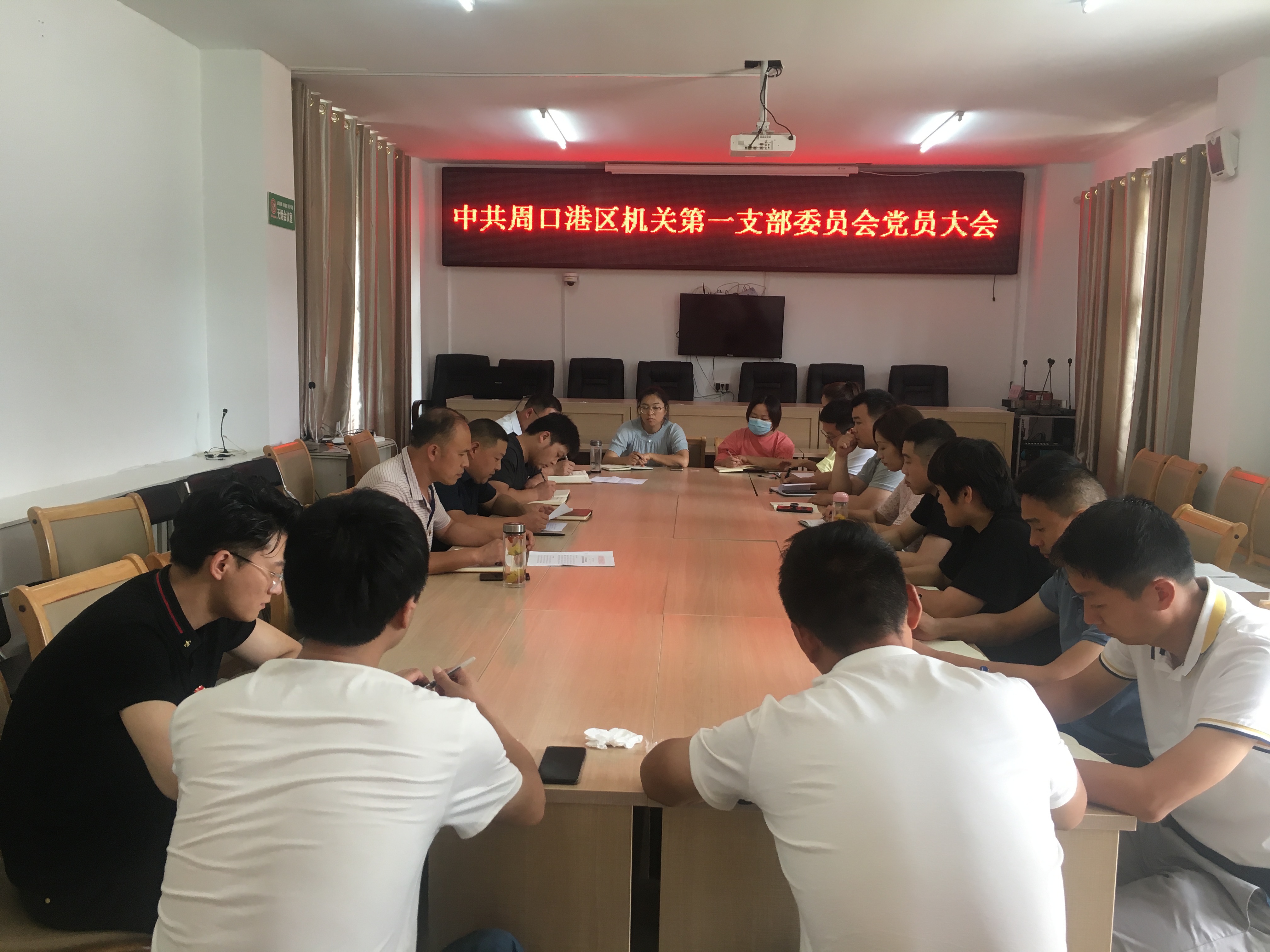 6月24日下午,周口港區(qū)機(jī)關(guān)第一黨支部召開全體黨員大會,會議傳達(dá)《中共周口港區(qū)機(jī)關(guān)黨委關(guān)于組織開展港區(qū)機(jī)關(guān)黨章黨規(guī)黨紀(jì)教育月活動的通知》,研究討論關(guān)于成立黨小組有關(guān)事宜。機(jī)關(guān)第一黨支部書記周繼增主持會議并上微黨課。港區(qū)機(jī)關(guān)第一黨支部全體黨員參加會議。
