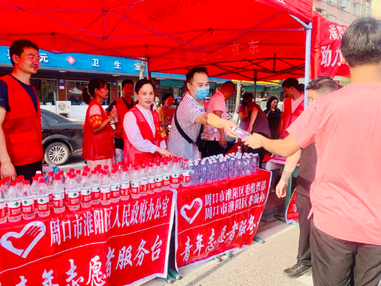 受疫情影響,推遲一個月的高考終于如約而至。7月7日,淮陽區(qū)委編辦志愿者服務(wù)隊與區(qū)委組織部志愿者,聯(lián)合共同開展“愛心助考”活動,在淮陽一高校門口搭起帳篷,設(shè)立愛心站點(diǎn),為考生和家長免費(fèi)提供礦泉水,為莘莘學(xué)子送去一份夏日的清涼和暖暖的祝福。