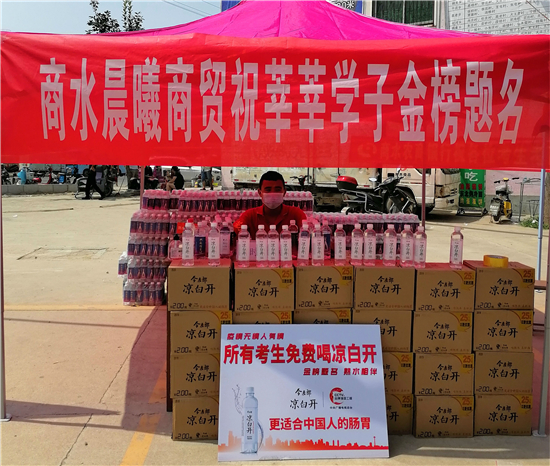 7月7日至8日,高考期間,天氣炎熱。商水縣晨曦商貿有限公司在商水5個高考考點附近,向學生及家長免費提供涼白開飲用水。截至8日上午,已發放涼白開17500瓶,價值35000元。