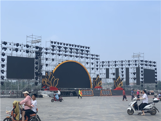 淮陽荷花節開幕式舞臺在太昊陵廣場廣場造型完工。據悉,2020年7月10日晚8點在此開幕,同時在舞臺東側的龍湖上將上演全息水幕燈光秀。