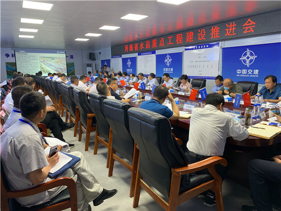 參觀結束后,與會人員在沈丘項目部會議室召開了全省水運重點工程復工復產推進會議。會議傳達了近期河南省有關安全、防汛、“六比一創”和節能減排競賽等各項工作部署以及全省交通運輸工作半年會議精神。