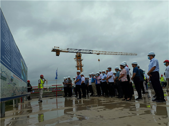 當天雖然大雨滂沱,卻沒有擋住與會人員的腳步。冒著大雨,參會人員對中交二航局沙潁河航道升級改造項目沈丘航運樞紐建設現場的船閘、節制閘、鋼筋加工配送中心、工地試驗室、安全體驗館和智慧工地管理系統進行了參觀,觀摩學習了沙潁河項目在安全環保管理、現場管理、質量管理、試驗室建設等方面標準化建設的成果。沙潁河項目的建設發展在全省水運工程行列做到了高標準建設、創品牌發展。