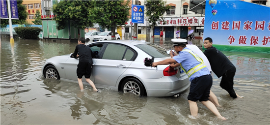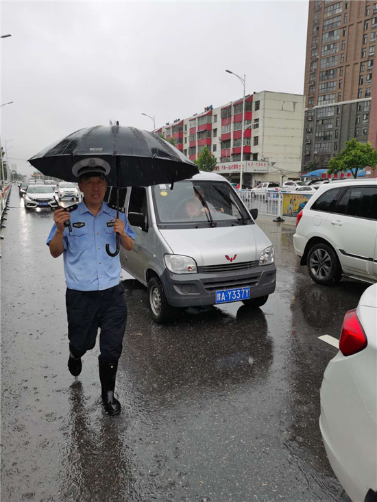 當天上午,周口市公安局副局長張新奇、市交警支隊支隊長馬清臣等冒雨深入一線巡查路況,指導一線民警保暢通。目前,城區交警直屬各大隊交警(輔警)全員上崗,全力投入到搶險救災行動中,力保廣大群眾的安全出行。