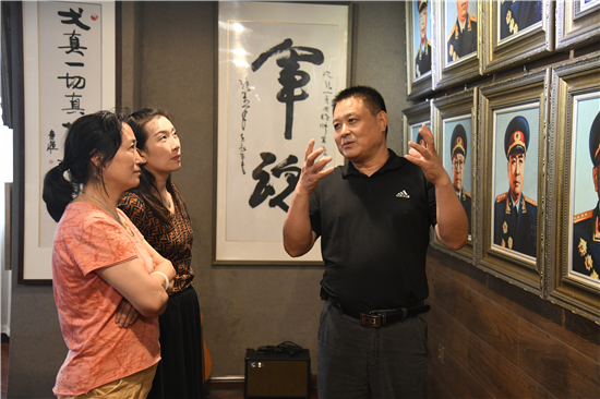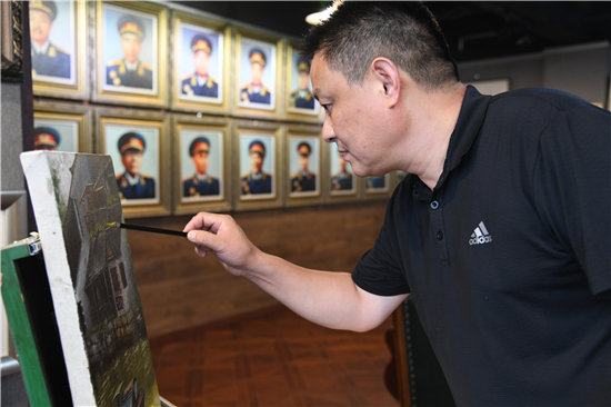走進毗鄰周口市區的張一油畫工作室,一股墨香迎面撲來。讓人眼前一亮的是畫室四周掛滿的人物肖像,特別是南面墻上的一組開國將帥肖像畫尤為引人注目。將軍們威武雄健,或凌厲或威嚴的眼神讓人回想起他們那個戎馬倥傯、戰火紛飛的年代。