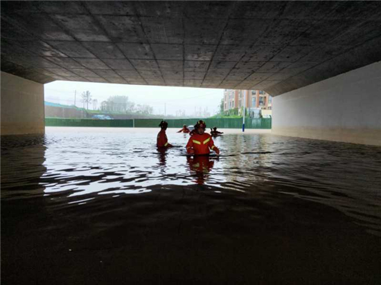 哪里有急難險重,哪里就有消防指戰員的身影。當日上午9時許,接到周口大道涵洞下有車輛被淹、司機遇困的警情后,示范區消防救援大隊緊急出動,面對齊胸的積水,他們無所畏懼,成功對遇困司機和車輛緊急施救。