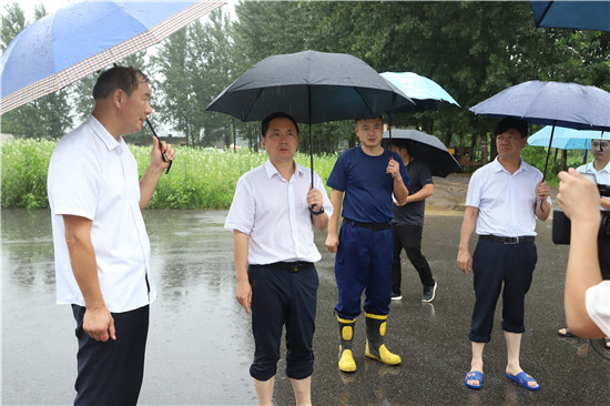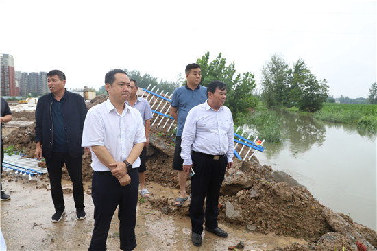 7月22日下午,周口港區管委會主任程若光到轄區檢查防汛排澇工作,管委會副主任李翔、劉學慶陪同檢查。