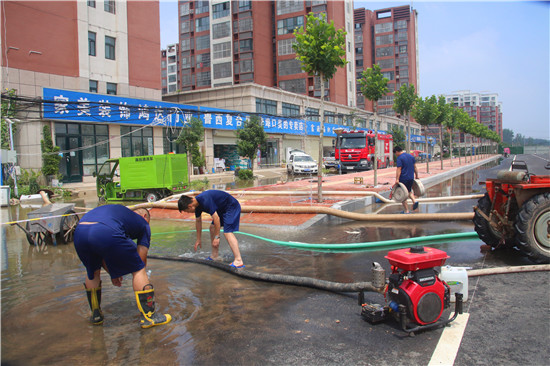 為加快排水速度,港區在匯林大道增設一個臨時提泵站,以每小時1200立方米的速度,開足馬力,全天排水。同時,安排工作人員24小時值班,緊盯排水動態,及時清除泵站格柵垃圾,將雨水順利排至沙潁河,減少道路雨水負載量。針對社區和道路積水情況,各職能部門調集全部可調動的潛水泵,迅速排出社區和道路積水。