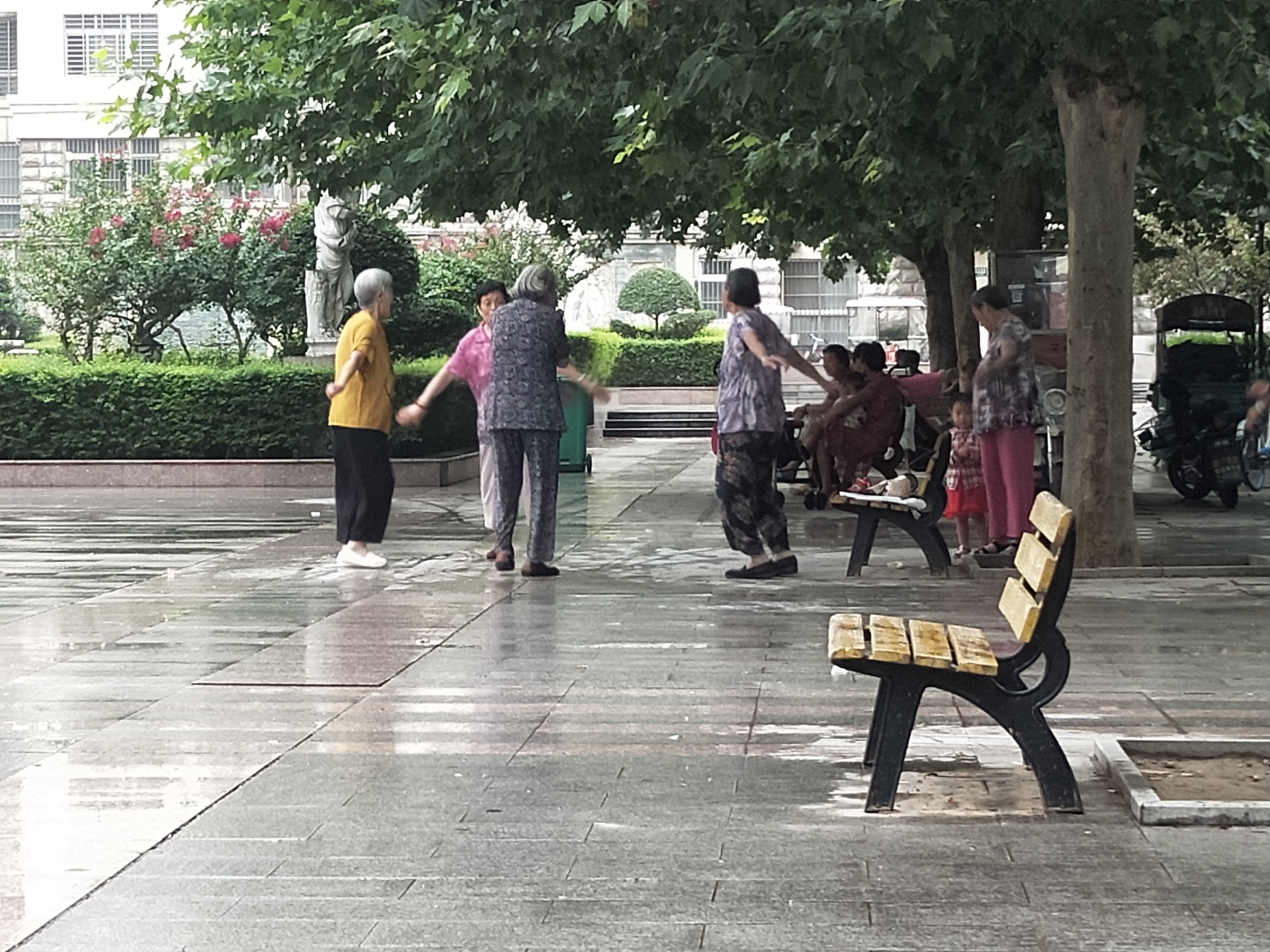 上午8點,天空隱約下著小雨,記者在北門小區廣場的噴泉旁邊轉轉。幾位70多歲的老人坐在排椅上,音響里傳來很大的戲曲聲回蕩在廣場上。“最多時有十幾個人吧,每天早上8點左右開始做操,音響聲音調得比較大,我家恰好就在這噴泉廣場西邊,在家里聽得很清楚。”李女士講,由于工作原因,她經常上夜班,想睡個好覺也不能如愿,她也向物業反映過,可是一直沒有什么效果。