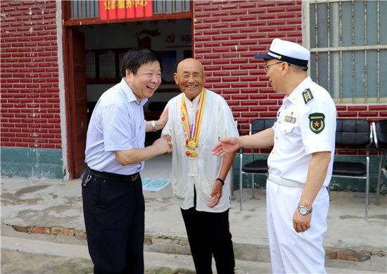 在90歲五級因戰(zhàn)殘疾軍人劉德山家,大伙認(rèn)真聽劉德山講述部隊(duì)的故事;汲冢鎮(zhèn)黃竹園行政村劉老家村88歲劉應(yīng)平參加過抗美援朝,如今年邁的老劉嚴(yán)重耳聾、語言交流障礙,還得靠親屬“翻譯”才能搭上一兩句話,當(dāng)聽到問他生活好不好時(shí),老劉興奮地豎起拇指說:“好好好”;今年94歲的抗戰(zhàn)老兵丁相廷身體十分硬朗、精神矍鑠,不拄拐、眼不花、耳微聾,得知縣領(lǐng)導(dǎo)要來慰問,老丁早早地把自己的軍功章準(zhǔn)備好了,一個(gè)個(gè)掛在胸前,見面一個(gè)軍禮彰顯剛強(qiáng)作風(fēng)。從1945年入伍至1950年復(fù)員,老丁記得清楚、講得明白,大伙聽得有味、不停點(diǎn)贊;巴集鄉(xiāng)段寨村92歲抗美援朝老戰(zhàn)士段相士有個(gè)堅(jiān)持幾十年的好習(xí)慣,他每天早上都在村里走一圈,感受美麗鄉(xiāng)村變化,再用溫水抹抹澡,保持健康體魄。