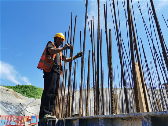 夏日豫東,驕陽(yáng)似火。8月3日,在中交二航局沈丘沙潁河航道升級(jí)改造工程節(jié)制閘施工現(xiàn)場(chǎng),工人們頂烈日,戰(zhàn)酷暑,趕工期,力爭(zhēng)早日打通水上交通大動(dòng)脈,助力周口“滿城文化半城水,內(nèi)聯(lián)外通達(dá)江海”中原港城建設(shè)。圖為工人們?cè)谝韷﹁徝㈤l堆鋼筋綁扎。