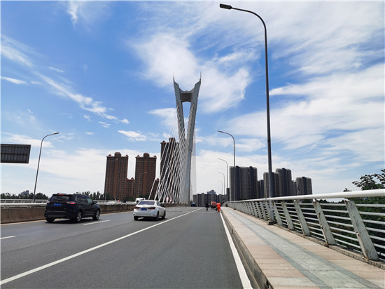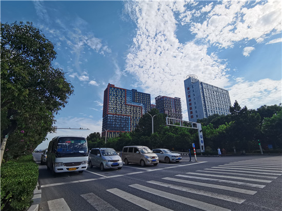 8月3日,周口市 中心城區晴空萬里,藍天白云,市民駐足在每個地方都能看到美景。
