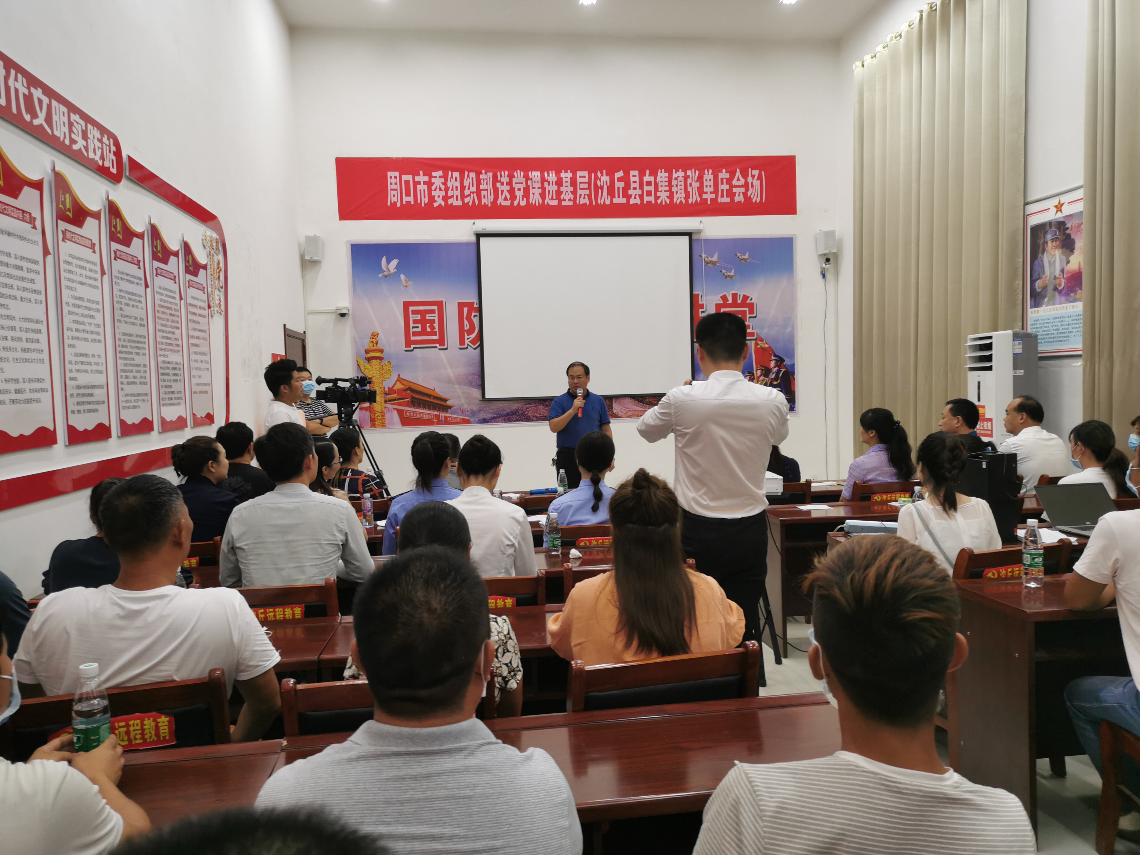 “是黨員就要勇于擔當,是黨員疫情面前就要敢于挺身而出……”8月4日下午,沈丘縣白集鎮張單莊村委會會議上座無虛席, 來自白集鎮政府、張單莊村的120多名黨員干部共同分享著一道“精神大餐”,由周口市委組織部組織的“送黨課下基層”活動正在上演。