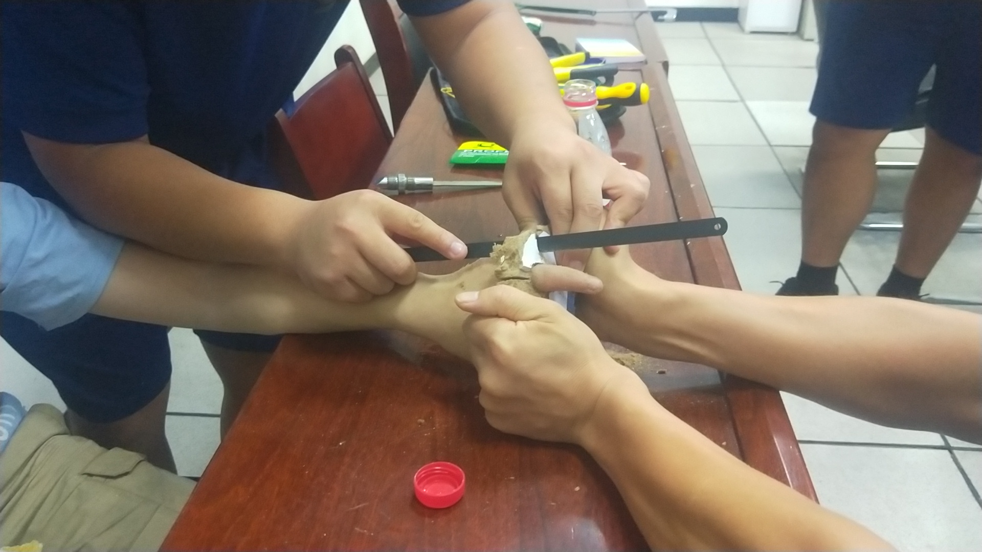 看到救援人員,小男孩十分害羞,有點(diǎn)不好意思?!拔铱醋雷由嫌袀€(gè)孔,就是想看看手指能不能伸進(jìn)去,結(jié)果就拔不出來(lái)了。”救援人員經(jīng)觀察發(fā)現(xiàn),小男孩左手無(wú)名指被卡在課桌木板上的小孔里,木板已被裁下,木板材質(zhì)為鋸末壓縮板,此時(shí)小男孩手指被卡部位周?chē)寻l(fā)生腫脹必須馬上處理。救援人員利用鋼鋸將木板一點(diǎn)點(diǎn)鋸開(kāi),然后又用鉗子用力將木板夾開(kāi),經(jīng)過(guò)3分鐘救援,成功將禁錮小男孩手指的木板摘除。看到木板被從手上取下,男孩長(zhǎng)長(zhǎng)地舒了口氣。