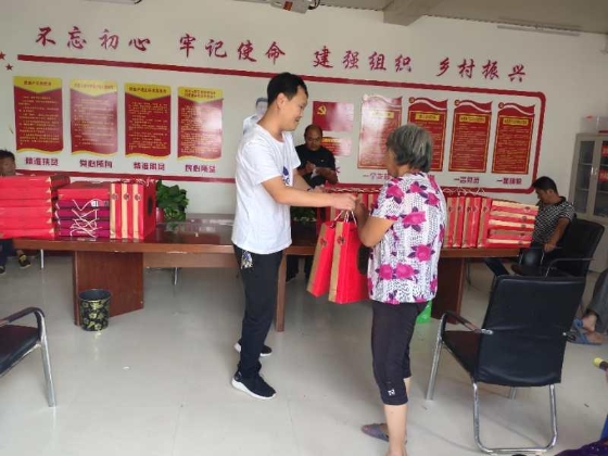 9月27日,淮陽區自然資源局駐劉振屯鄉耿樓行政村駐村第一書記莊騰騰與愛心企業一起走訪慰問村里的老黨員、貧困戶以及90歲以上高齡老人,向他們送去黨和政府的關懷與節日問候。慰問活動共發放月餅100件。