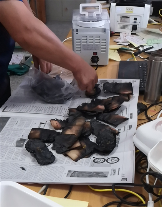 由于紙幣毀損嚴(yán)重,中原銀行周口分行現(xiàn)金中心立即向人民銀行周口市中心支行匯報(bào)情況。9月29日上午9點(diǎn),王女士在中原銀行周口分行現(xiàn)金中心主管王衛(wèi)平、沙北支行會(huì)計(jì)主管宋丹丹陪同下,攜帶被燒毀的現(xiàn)金到人民銀行周口市中心支行貨幣金銀科申請(qǐng)鑒定。