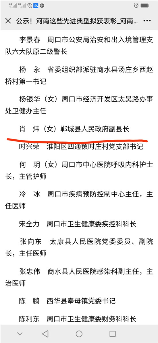 10月10日,河南省委、省政府表彰了一批抗擊新冠肺炎疫情先進個人、河南省抗擊新冠肺炎疫情先進集體、河南省優秀共產黨員、河南省先進基層黨組織。其中,鄲城縣副縣長肖煒,縣第二人民醫院援鄂醫生、主治醫師仵福全,縣人民醫院重癥醫學科ICU主任、副主任醫師王劍橋3位同志,被評為河南省抗擊新冠肺炎疫情先進個人。