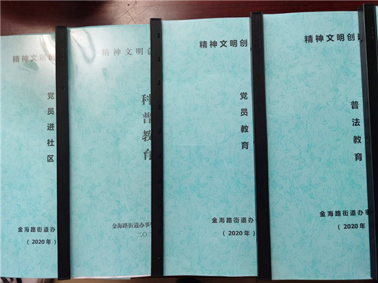 規(guī)范統(tǒng)一。朱莊社區(qū)創(chuàng)文檔案資料主要包括疫情防控、綜合文化服務(wù)、志愿者服務(wù)、黨員教育、普法教育等內(nèi)容,共12本。在格式方面,對字體、字號、圖片排版、數(shù)字和標(biāo)點符號使用等進行規(guī)范,做到風(fēng)格統(tǒng)一。在活動記錄方面,分為活動方案制定、活動圖片、活動小結(jié)等內(nèi)容,按照統(tǒng)一格式匯總整理,手寫記錄與彩色照片搭配,使活動記錄清楚、生動、明了。在資料裝訂方面,采用統(tǒng)一封面活頁裝訂。
