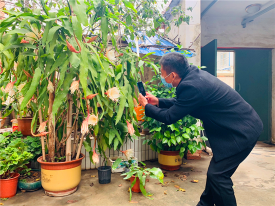 在周口市中心城區的一個家屬院里,記者見到了88歲的苗天才和他養的曇花,“一株21年樹齡的曇花開了43朵,另外兩株5年樹齡的曇花加起來開了13朵,這3株曇花一共開了56朵。”苗天才說,早上四五點的時候曇花就慢慢地開放了,到現在五六個小時過去了曇花還保持著開放狀態。