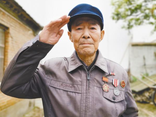 聽說記者要為他照相,老人立即要求家人為他換身干凈的衣服,認真把軍功章、獎章一一戴在身上,雙腿合攏,努力地挺直上身,對著鏡頭打了一個標準的敬禮(如圖)。