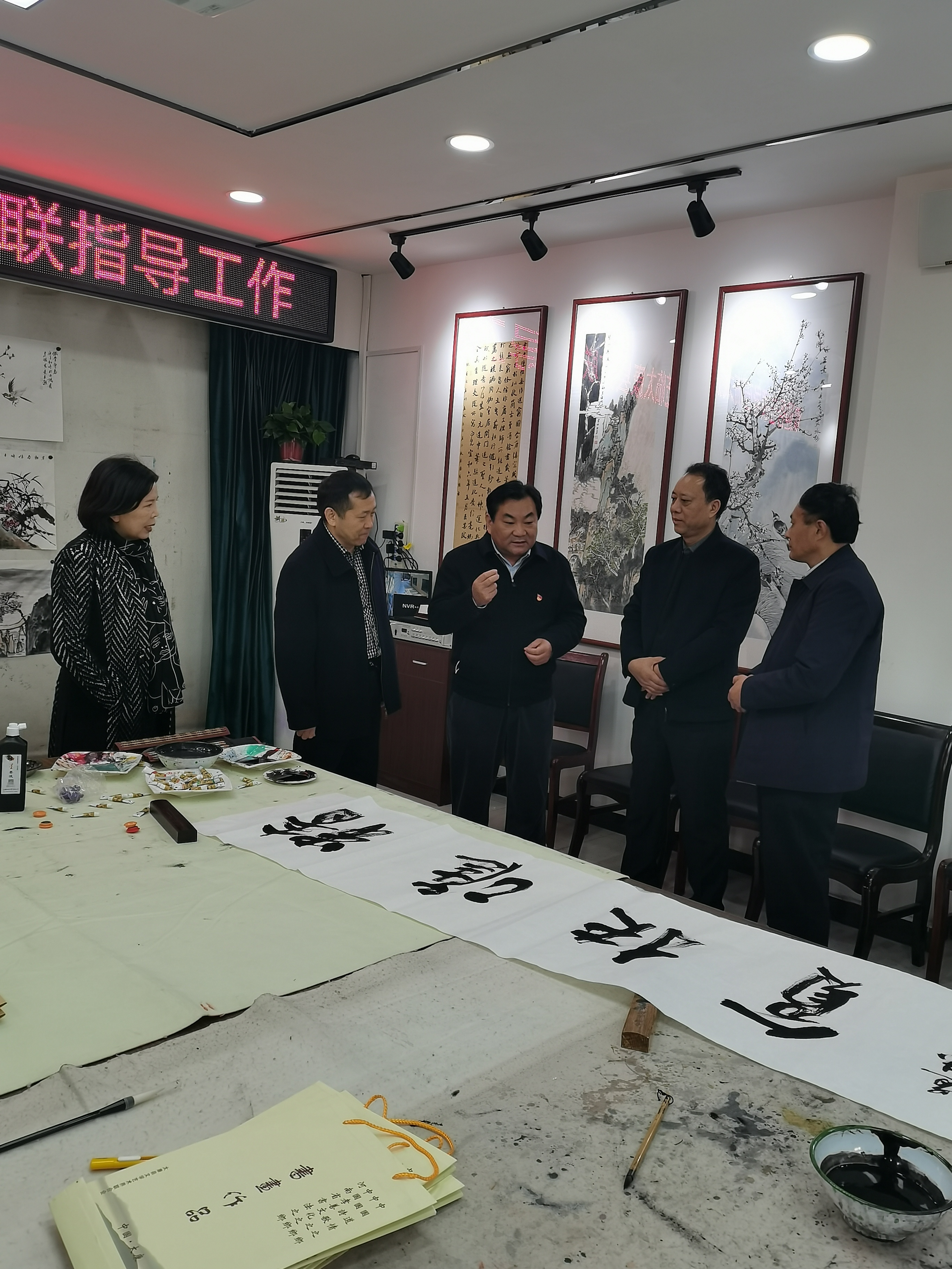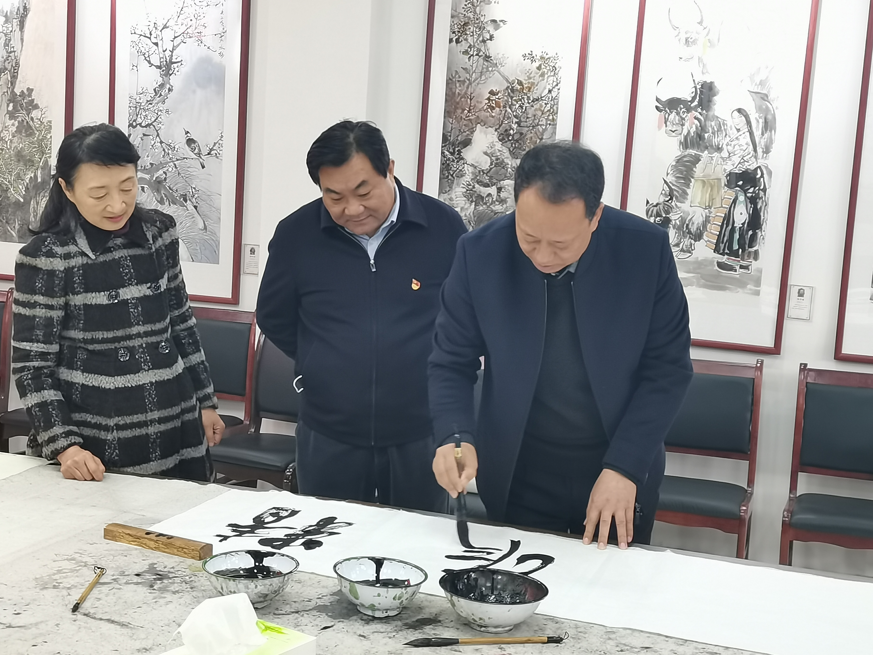 王國璽一行實地察看了縣文聯的機關環境建設、檔案管理和書畫名家精品,聽取了縣文聯主席安義斌關于協會管理、活動開展情況的匯報后,對文聯的工作給予充分肯定。他勉勵全縣文藝工作者:一是要堅持正確的政治方向,弘揚主旋律,講好太康故事;二是要“走出去、請進來”,經常開展與外地進行交流,汲取經驗,相互切磋,共同提升;三是要活動開展常態化,真正做到“文藝為民、文藝惠民、文藝樂民”;四是要以提高藝術素養、提升專業能力為目標,培養德藝雙馨的藝術領軍人物和高素質藝術人才,推動全縣藝術事業高質量發展;五是要成立“文化產業發展集團”,匯聚全縣藝術精英,為全縣藝術家搭建更高的平臺,讓太康文化藝術走出太康,走得更遠。