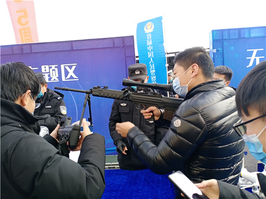 活動(dòng)現(xiàn)場(chǎng)設(shè)置了“反假幣主題區(qū)”“消防主題區(qū)”“防電詐主題區(qū)”“禁毒主題區(qū)”“互動(dòng)區(qū)”等形式多樣的功能展示區(qū),現(xiàn)場(chǎng)接受群眾咨詢,與市民深度互動(dòng),讓市民近距離體驗(yàn)、全面感受人民警察的日常工作。除此之外,民警還進(jìn)行了槍械展示、無人機(jī)展示等內(nèi)容。