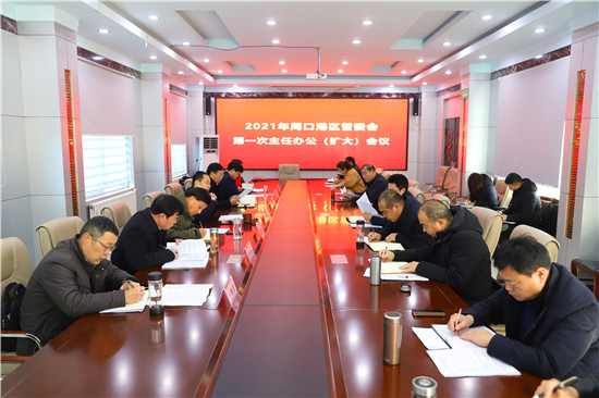 1月13日,周口港區管委會主任程若光主持召開2021年港區第一次主任辦公會議,聽取當前重點工作匯報,研究推進方案。周口港區領導杜廣賢、張東立、李翔、劉學慶、李素芹、康群泉出席會議。