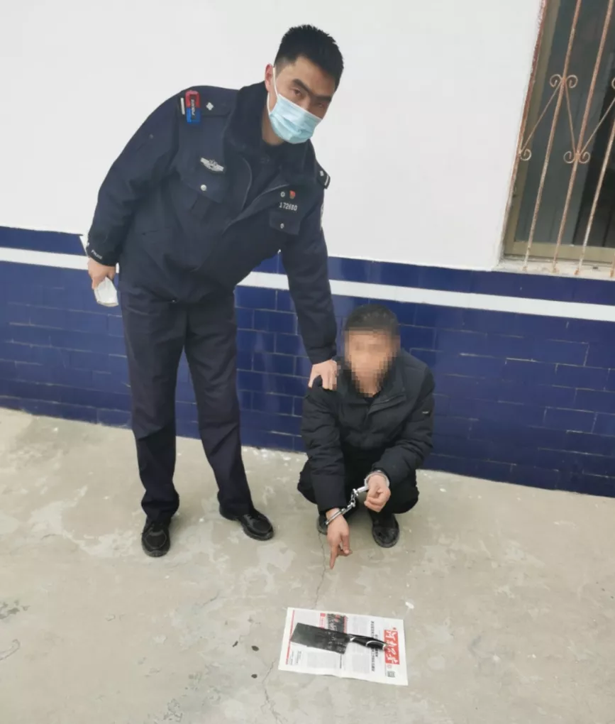 接到報警后,穆店派出所所長吳玉峰帶領值班人員孫兆顯、王濤、尹文、郭軍禮等人迅速趕到現場。正當民警尋找李某的時候,只見一人騎著摩托車自遠處趕來。細心的民警發現李某口袋里竟然裝著一把菜刀,隨即上前將其控制。