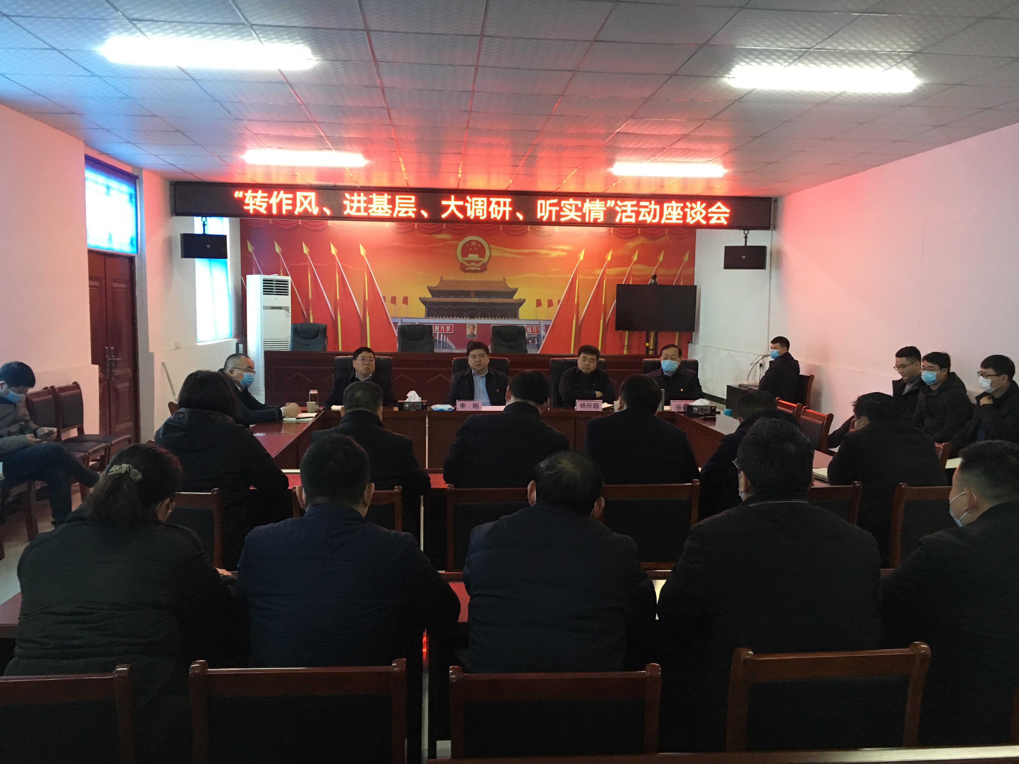 慰問結束后,李剛一行到衛真辦事處開展"轉作風、進基層、大調研、聽實情"活動,召開座談會,聽取辦事處工作匯報,并圍繞基層社區黨建、經濟發展思路、疫情防控、城市管理、信訪穩定等工作進行座談交流。調研組工作人員、衛真辦事處全體班子成員及后備干部參加座談。