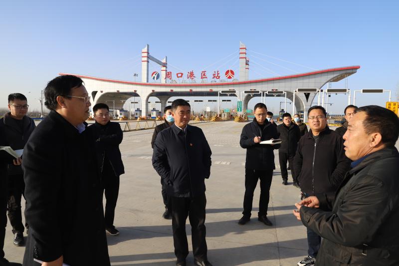 大廣高速港區互通立交項目距中心港碼頭約為1.2公里,目前已經達到通車條件,通車后通過疏港道路實現碼頭與高速無縫對接。在該項目收費站,孫鵬詳細詢問項目負責人通車前需要做的工作,他指出,高速公路是多式聯運的重要組成部分,要抓緊時間解決目前存在問題,推進大廣高速港區互通立交項目早日通車。