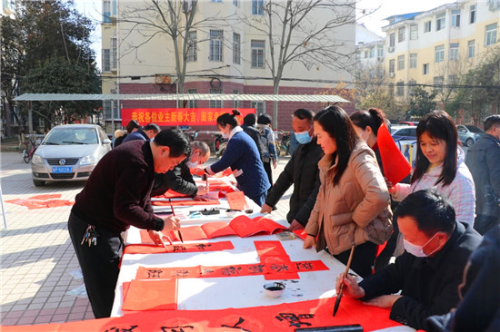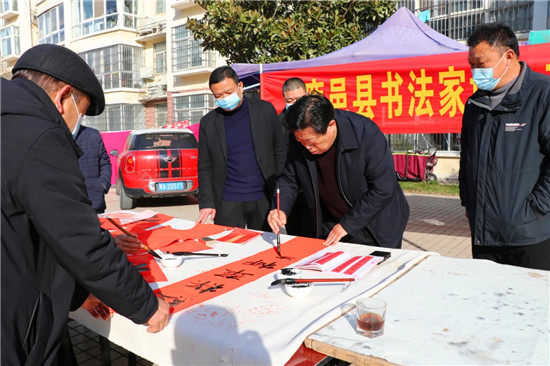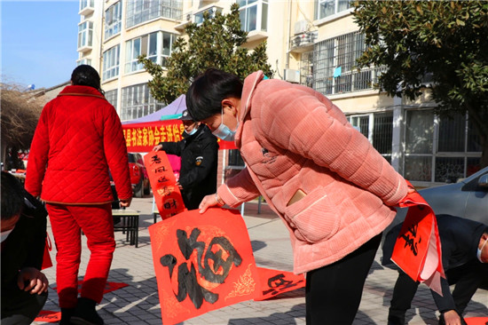 “春節(jié)前夕,縣書法家協(xié)會為群眾傾心打造文化盛宴,組織若干場義寫春聯(lián)進社區(qū)活動,旨在弘揚祖國傳統(tǒng)文化,豐富群眾文化生活。”鹿邑縣書法家協(xié)會主席韓文甫說。