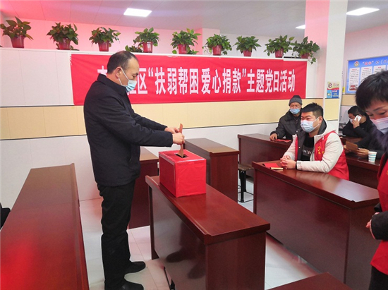 社區黨員積極響應,奉獻愛心,很快就捐款9300元?!拔译m然不是黨員,但是看到社區黨員干部真心為群眾辦實事,我也要通過捐款這種方式盡一點綿薄之力,以實際行動幫助困難群眾?!庇械纳鐓^群眾聽到消息,特意趕到社區黨群服務中心,將捐款交到社區副主任李春花的手上。