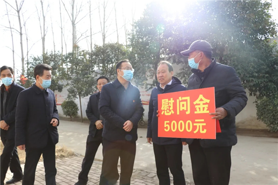 “感謝黨!感謝政府惦記著俺!”1月28日上午,搬口辦事處梁寨行政村脫貧摘帽戶孟令梅接過慰問金,感動得熱烈盈眶。當日,市城鄉一體化示范區管委會主任張建黨帶領區民政和退役軍人事務局、鄉辦相關負責同志一線慰問脫貧摘帽戶及敬老院特困老人,給他們送去慰問金和慰問品。示范區管委會副主任王磊參加慰問活動。
