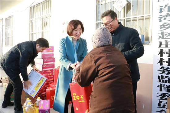 當(dāng)日下午,一輛滿載慰問品的貨車緩緩駛?cè)脍w莊行政村村室內(nèi),車上是王淑華和東新區(qū)人民醫(yī)院的志愿者們?yōu)橼w莊行政村困難群眾準(zhǔn)備的年貨。活動現(xiàn)場,王淑華親切地與趙莊行政村困難群眾拉家常,小院內(nèi)充滿了歡聲笑語。