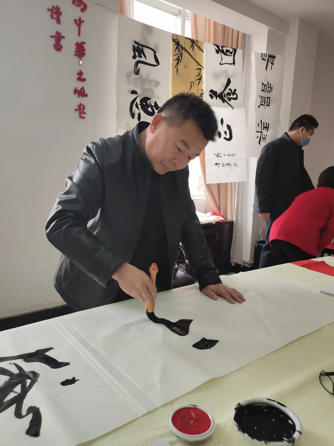 當(dāng)日下午,李培華同書法家和書法愛好者們一起揮毫潑墨,以文會(huì)友,各展才華,切磋交流,一張張惟妙惟肖的畫作,一幅幅行云流水的書法,一副副雋秀工整的春聯(lián),一個(gè)個(gè)喜氣洋洋的“?!弊周S然紙上。楹聯(lián)飄香,墨香四溢,濃濃的年味撲面而至?,F(xiàn)場(chǎng)居民拿到自己心中滿意的充滿濃濃年味的“福”字和飽含著美好祝福的春聯(lián),個(gè)個(gè)喜笑顏開,紛紛說道:“市場(chǎng)上買的春聯(lián)都是印刷品,雖然精美但缺乏生命力,現(xiàn)場(chǎng)寫的春聯(lián)更有年味、更有文化品位”。