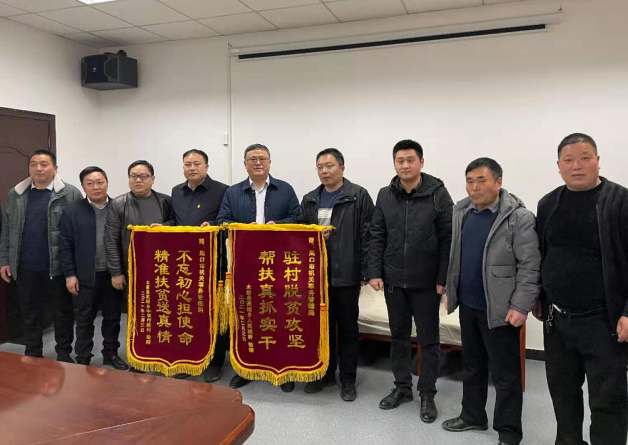本報訊(記者 竇娜)2月4日,市機關事務管理局迎來了一批特殊的客人,該局對口幫扶村——太康縣高朗鄉中黃村黨支部書記黃東體和群眾代表,送來了兩面寫有“不忘初心擔使命,精準扶貧送真情”和“駐村脫貧攻堅,幫扶真抓實干”的錦旗,感謝市機關事務管理局在幫扶工作中對該村的大力支持和真情關懷。